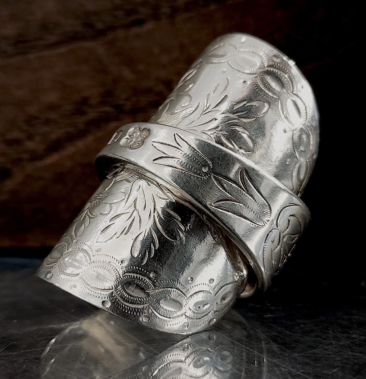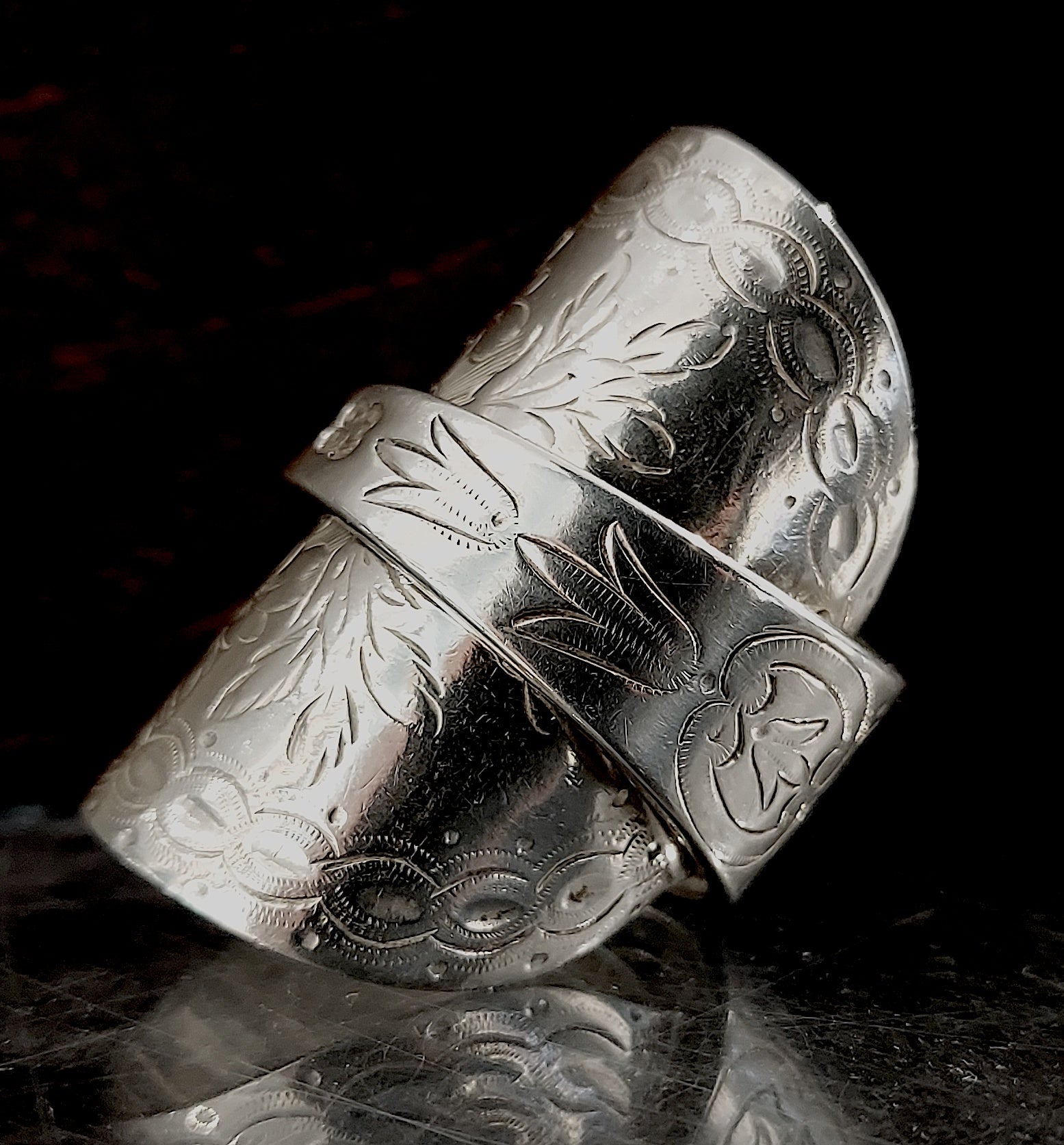 There are some light surface scratches and slight patina, to be expected on antique silver items which have been carefully used and well cared for. The ring is not made from a brand new piece of silver, any scratches and signs of wear add to it's character ;-) Being hand-crafted, this ring may not be as perfectly round as a mass produced machine made ring might be. This does not affect the fit or loveliness of the ring at all!